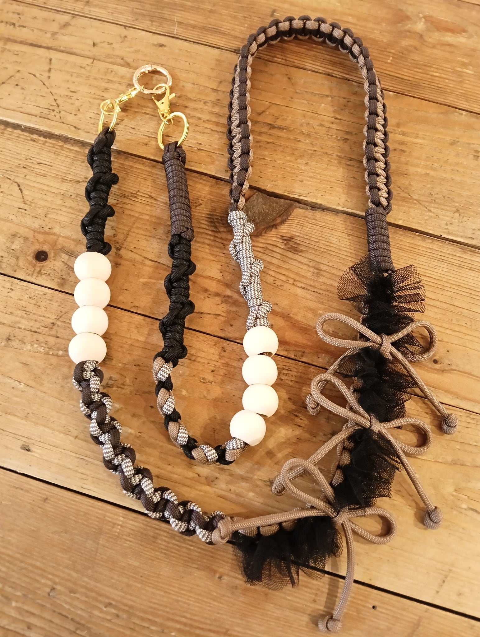 パラコードのリボンとレースをMIXしたロングストラップ